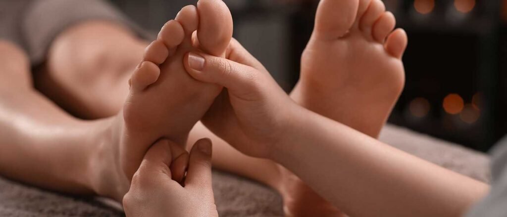 A reflexologia podal é uma técnica que estimula pontos específicos nos pés, relacionados a órgãos e sistemas do corpo. Ela promove relaxamento, alívio de tensões e melhora da circulação, sendo indicada para estresse, dores crônicas e desequilíbrios emocionais.